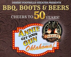Get ready for this kick-up-your-boots cowboy cabaret as we pay tribute to two iconic western musicals! Celebrating their 50th year, Desert Foothills Theater presents this live concert fundraising event, featuring your favorite musical selections from Annie Get Your Gun and Oklahoma!