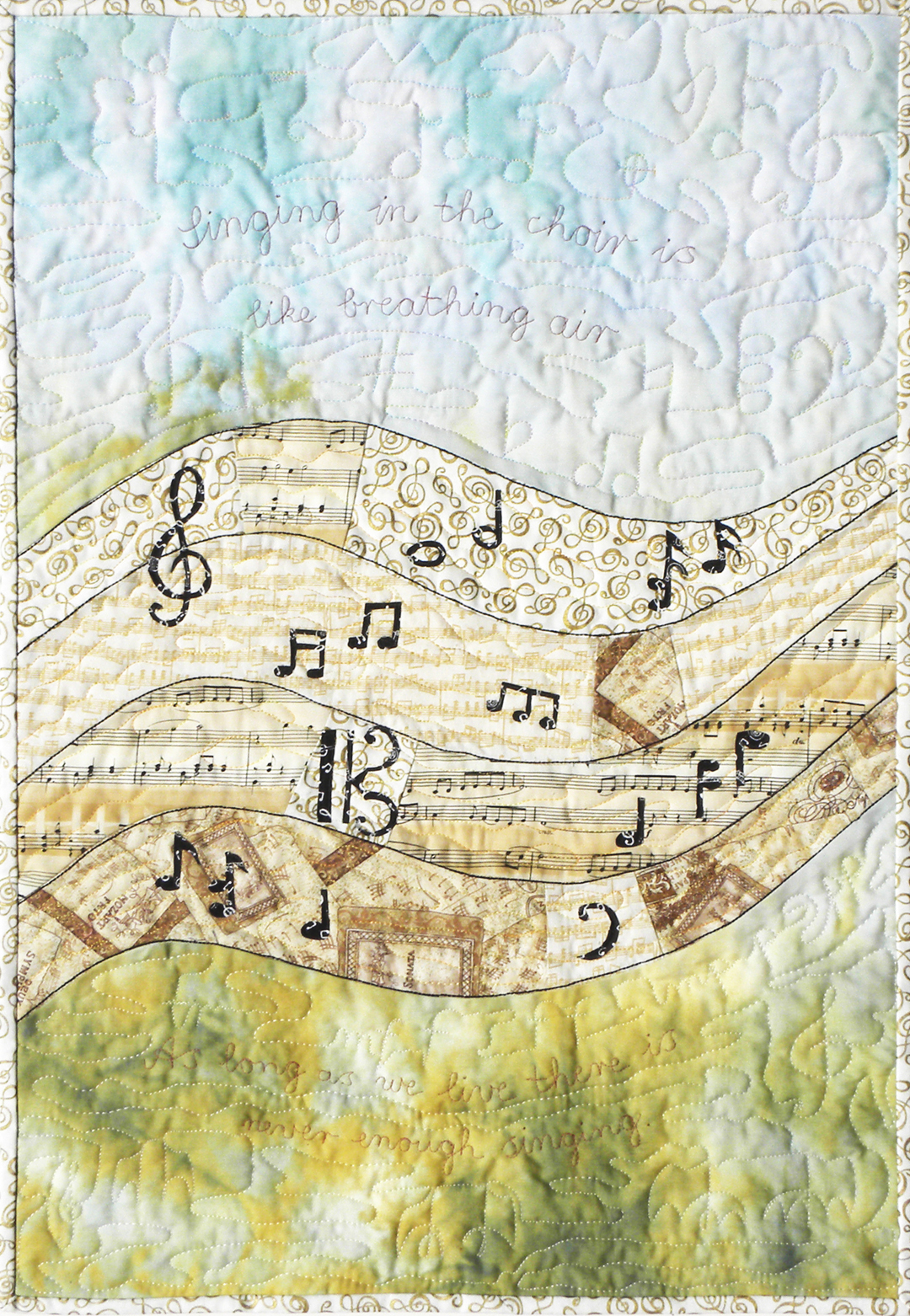Are you curious about how music can inspire a quilt? In my presentation, “Music is woven into my quilts,” I’ll show twelve quilts—some you’ll see up close, and some through projected images—and share the stories behind each one. You’ll hear about the music that sparked my ideas, listen to some of the tunes (mostly classical), and see how those melodies found their way into fabric, colors, and shapes. It’s a relaxed, creative journey that brings together sound and quilting. Join me for an early afternoon of quilts and music.
